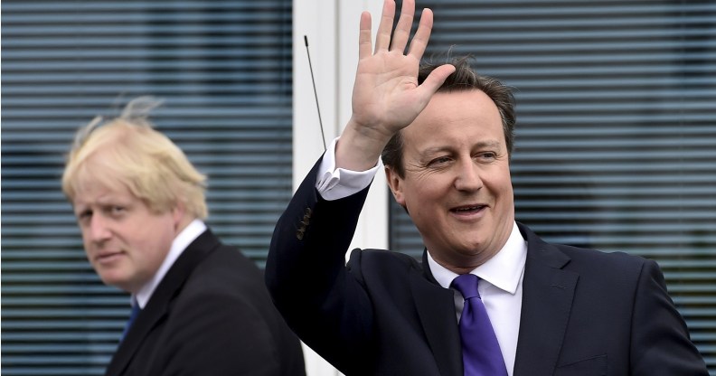 Then British prime minister David Cameron (R) and mayor of London Boris Johnson. (TOBY MELVILLE/AFP/Getty Images)