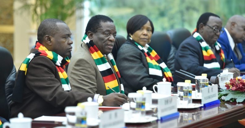 BEIJING, CHINA – MARCH 4: Zimbabwean President Emmerson Mnangagwa during a meeting with Chinese Premier Li Keqiang at the Great Hall of the People on April 4, 2018 in Beijing, China. (Photo by Parker Song- Pool/Getty Images)