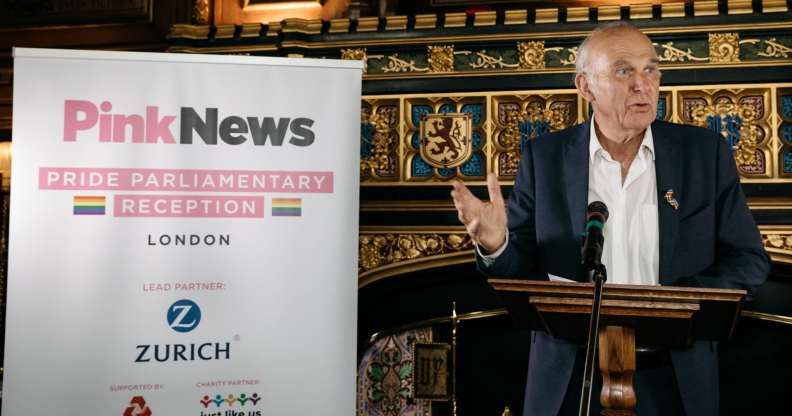 Liberal Democrat leader Sir Vince Cable has spoken at the PinkNews reception in Parliament.