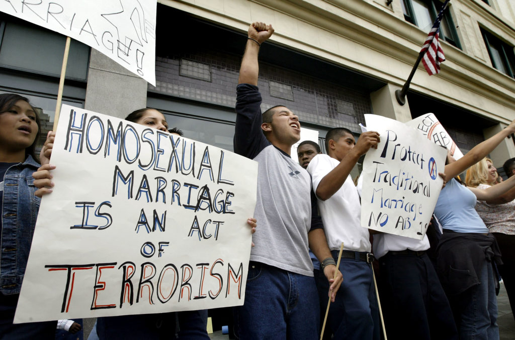An anti-gay rally in Los Angeles, California.(David McNew/Getty)